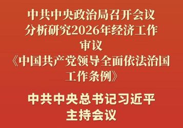 ??新華社北京12月8日電 中共中央政治局12月8日召開會議,分析研究2026年經(jīng)濟(jì)工作,審議《中國共產(chǎn)黨領(lǐng)導(dǎo)全面依法治國工作條例》。中共中央總書記習(xí)近平主持會議。